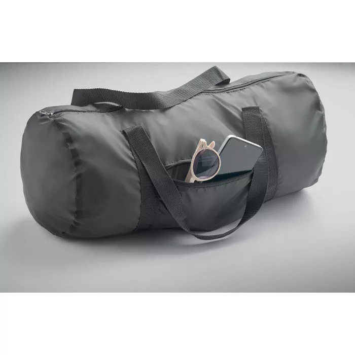 190T RPET poliészterből készült sport- vagy utazótáska cipzáras zsebbel az elülső oldalán. Kapacitás: 20 l.