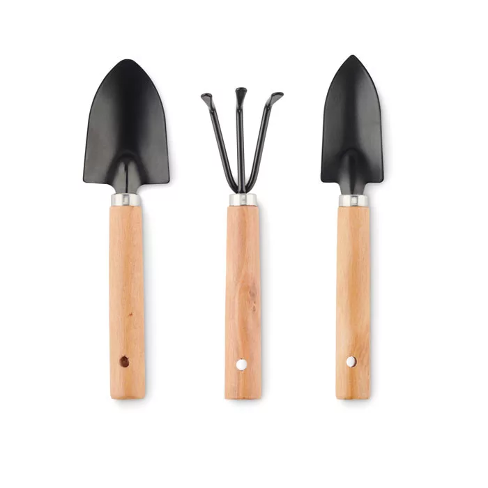 3 darabos kerti szerszámkészlet. Gereblye és 2 ásó. RPET filc tokban.