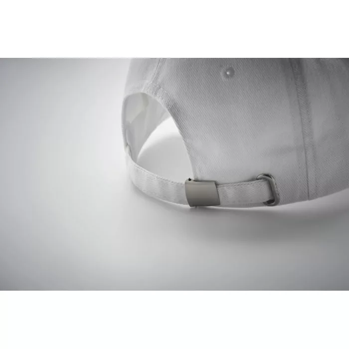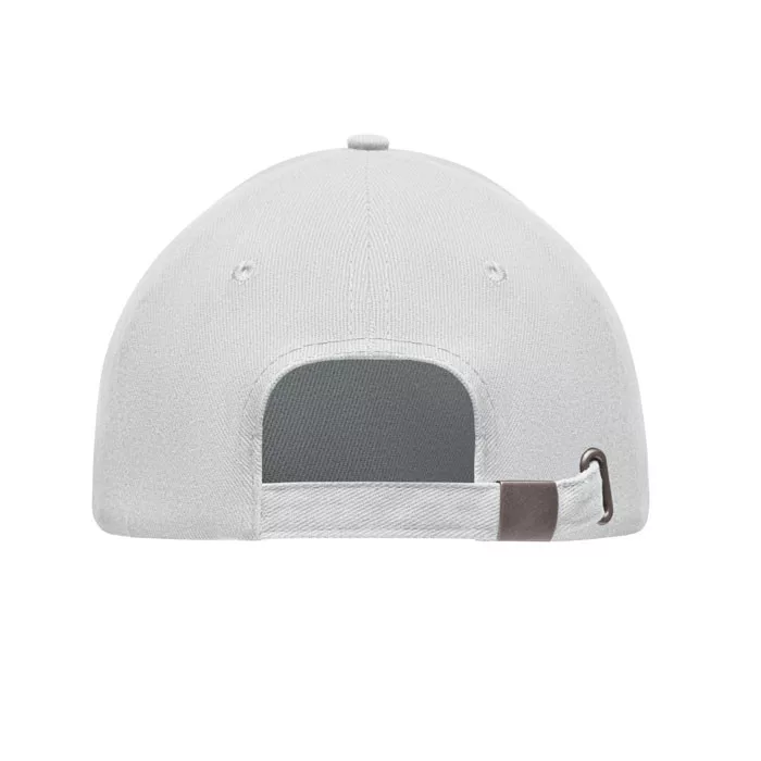 5 paneles baseball sapka 260 g/m² fésült vastag pamut twillből, ezüst színű acél csattal. 4 hímzett, színazonos szellőzőlyukkal. Méret 7 1/4.