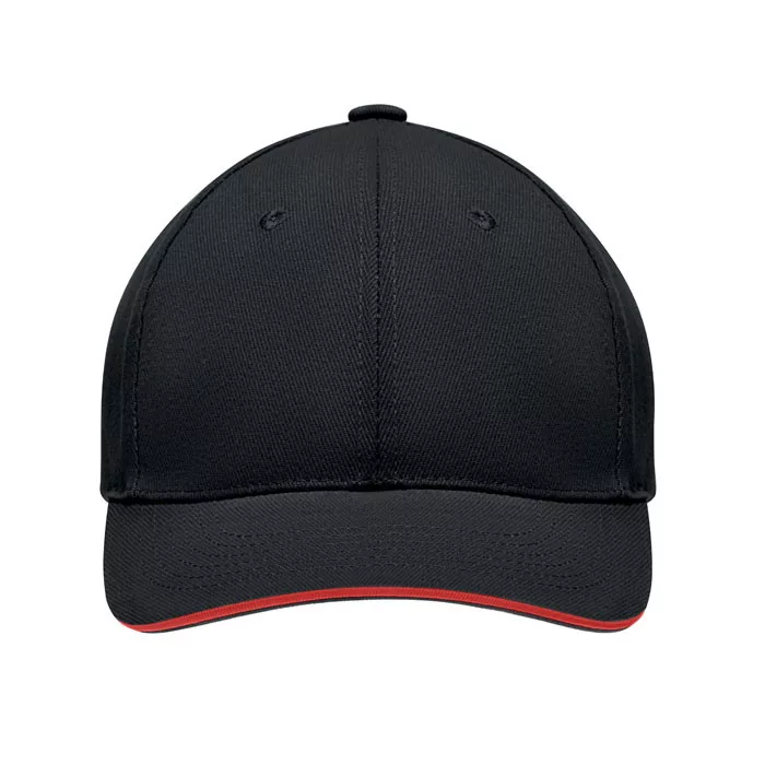 6 panel baseball sapka 270g/m² (Fekete/piros)