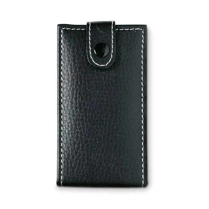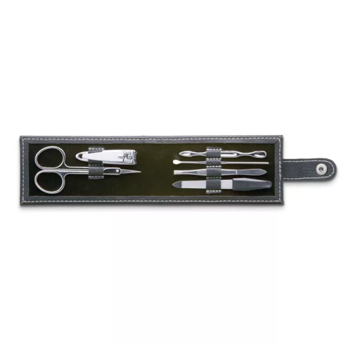 Manikűrkészlet téglalap alakú PU tokban. 6 részes, rozsdamentes acél eszközökkel.