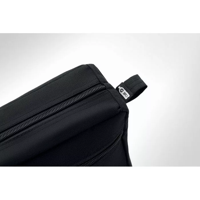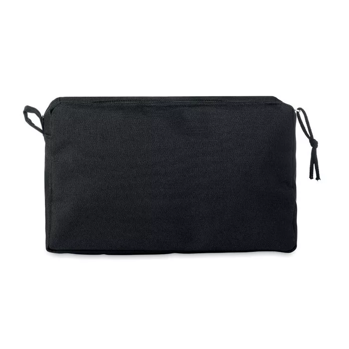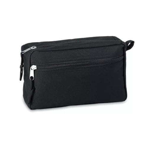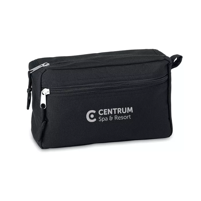 Ez a cipzáras, zsebes kozmetikai táska tökéletes kellék utazáshoz. Kozmetikumait, samponos flakont, smink eszközeit a fő rekeszben tárolhatja. A kisebb elülső zsebbe apróbb tárgyakat tehet. 600D vastag RPET anyagból készült. Ha a szállodában vagy fürdőszobában nincs hely a tárolására, a kis függesztőpánt segítségével felakasztható.