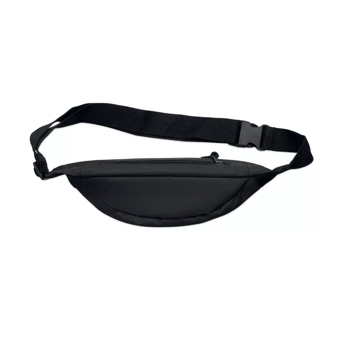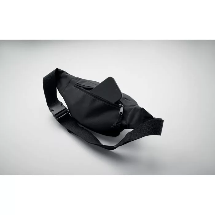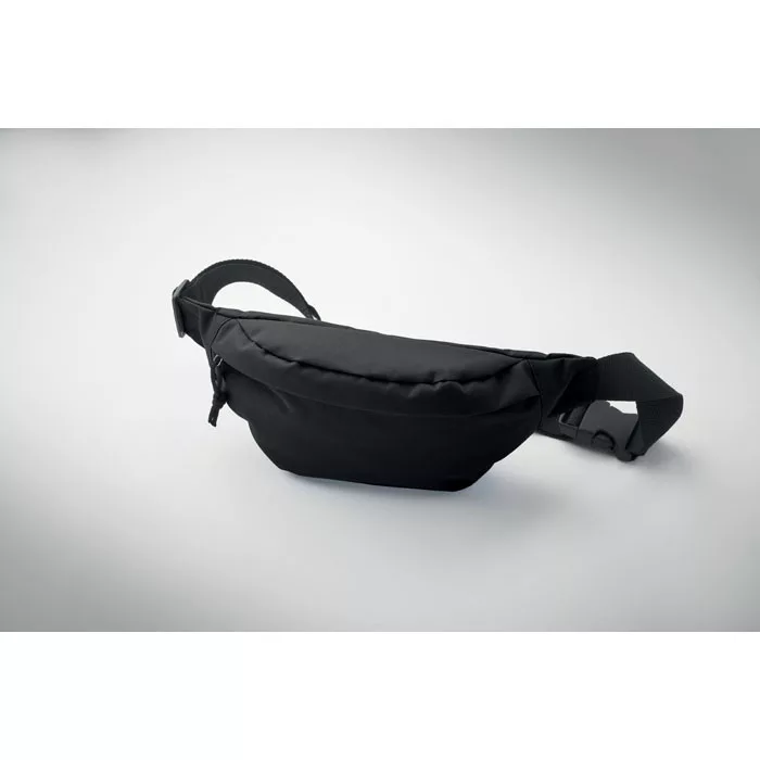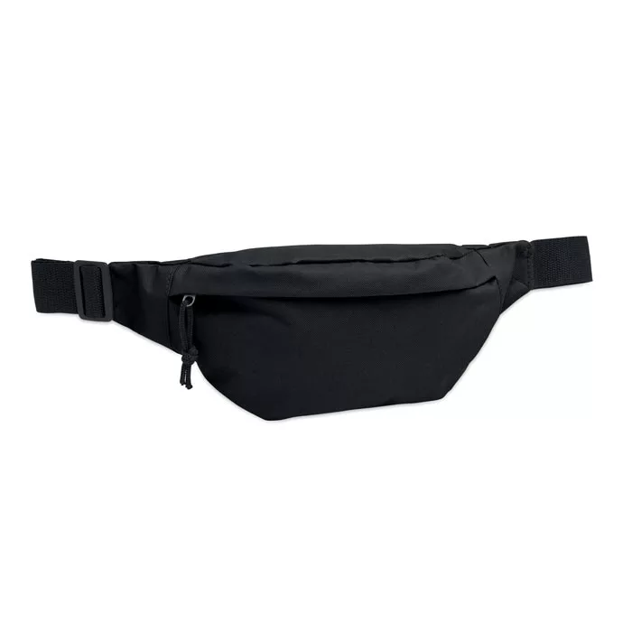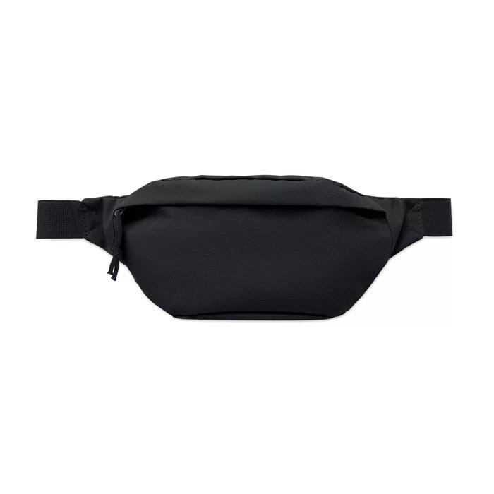 Övtáska 600D RPET poliészterből, cipzáras fő rekesszel és rejtett cipzáras hátsó rekesszel.