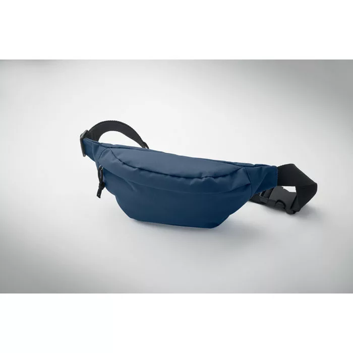 Övtáska 600D RPET poliészterből, cipzáras fő rekesszel és rejtett cipzáras hátsó rekesszel.