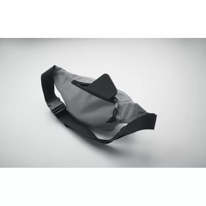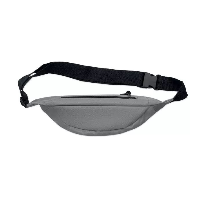 Övtáska 600D RPET poliészterből, cipzáras fő rekesszel és rejtett cipzáras hátsó rekesszel.