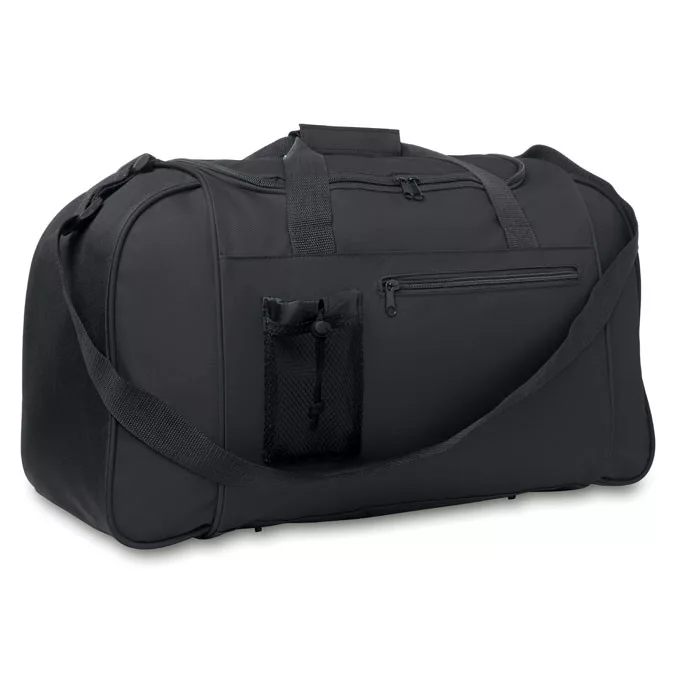 600D poliészter sport- vagy utazótáska. Elülső zsebbel. Állítható és levehető vállpánttal.