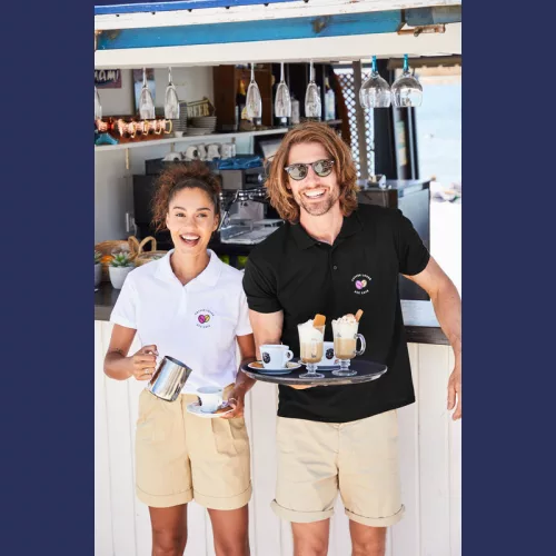 65% poliészter + 35% pamut, galléros férfi rövid ujjú póló, összekapcsolás 3 ugyanolyan színű gombbal, nyakrögzítővel ellátva, vállrögzítővel ellátva.