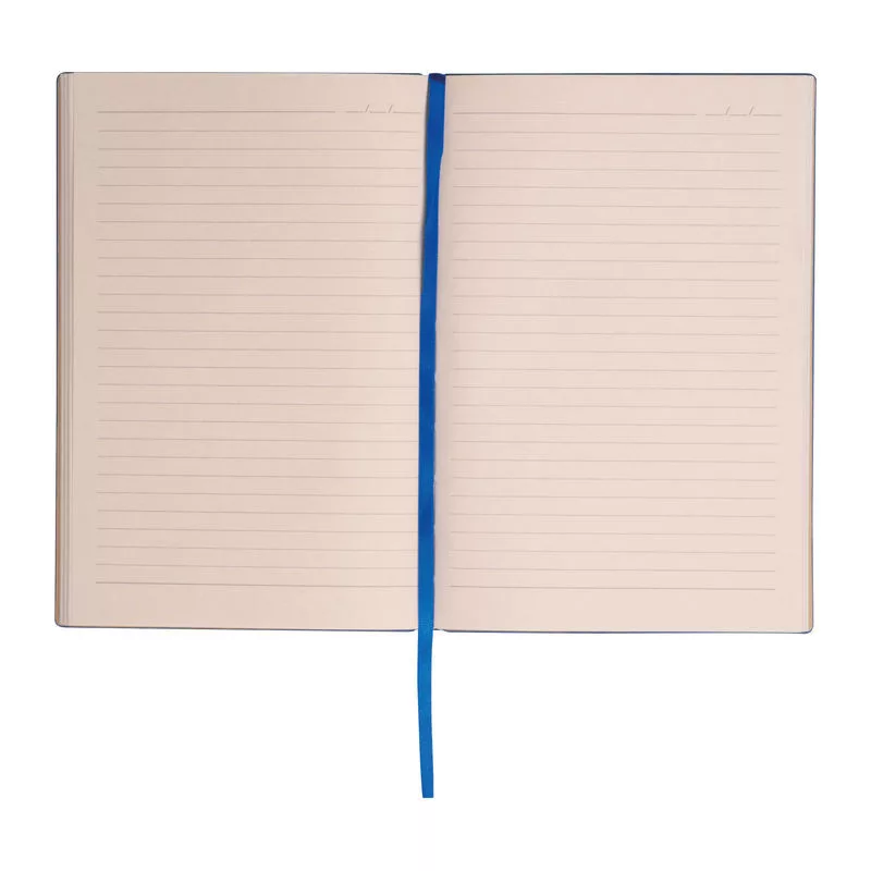 A5 méretű jegyzetfüzet PU-borítással, bordázott felülettel és 192 vonalas oldallal, cukornádból készült papírból.