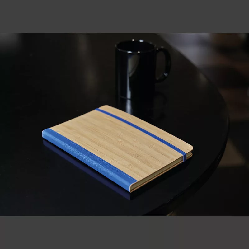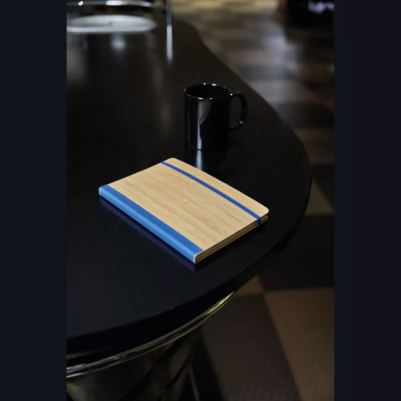 Elől bambusz borítású notesz, hátul újrahasznosított műanyag borítással. A jegyzetfüzet 192 vonalas oldalt, könyvjelzőt és tolltartó hurkot is tartalmaz.
