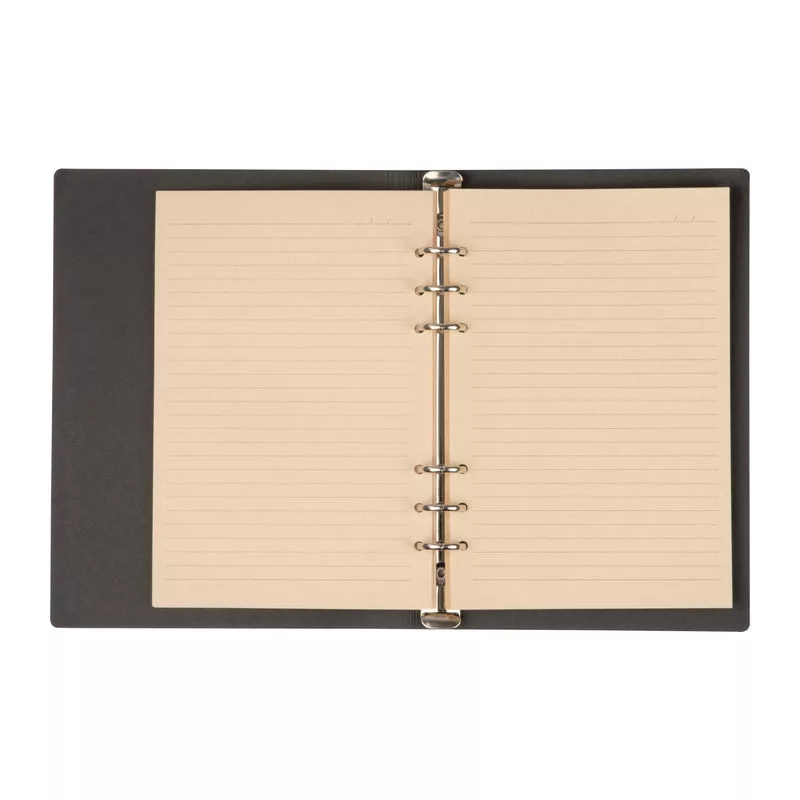 A5 méretű gyűrűs notesz PU-borítóval, 200 vonalas oldallal cukornádból készült papírból.