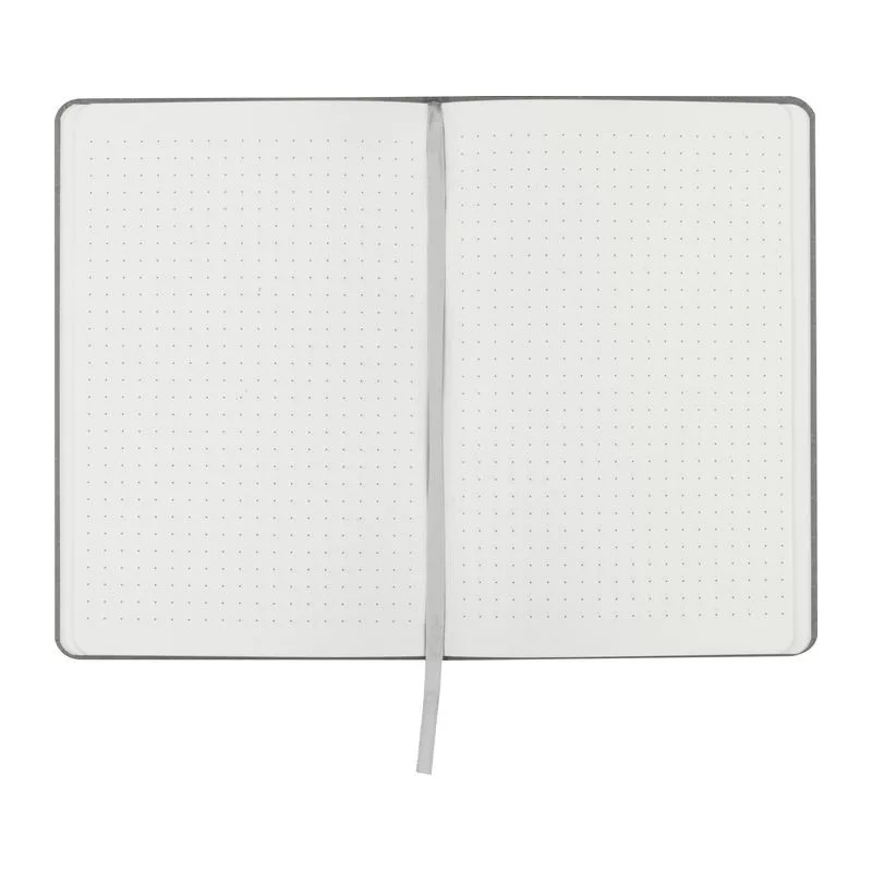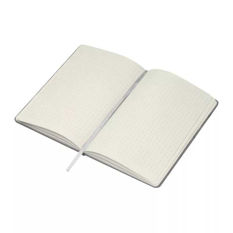 Környezetbarát, A5-ös notesz újrahasznosított karton borítóval, könyvjelzővel, 160 pontozott oldallal (70g /m²) és könyvjelzővel. Tökéletesen használható vázlatok vagy jegyzetek készítéséhez.