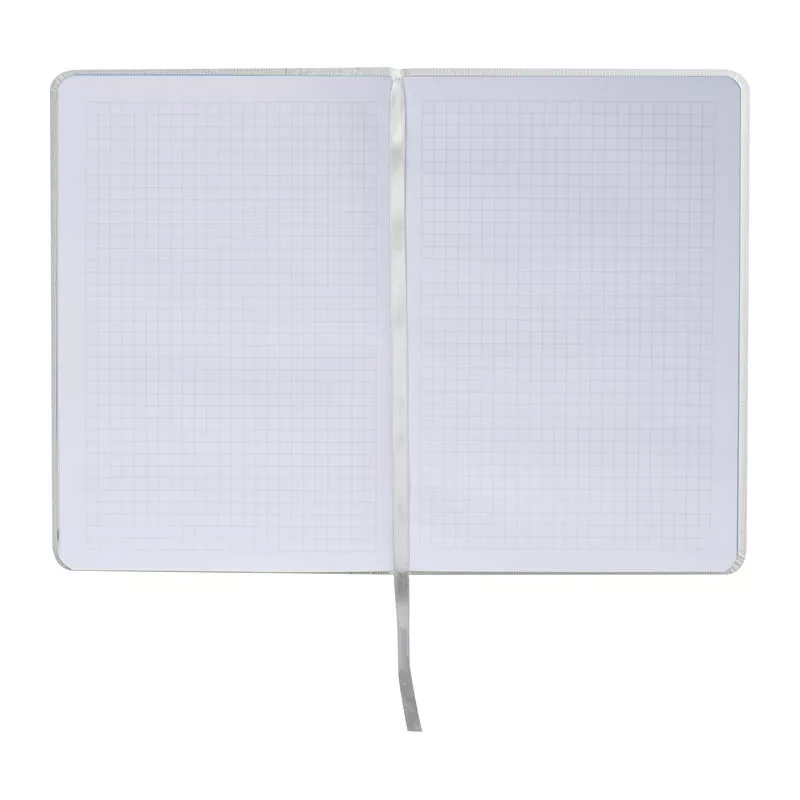 192 oldalas, kockás, A5-ös notesz, strukturált felülettel, könyvjelzővel és kis zsebbel egy toll számára.