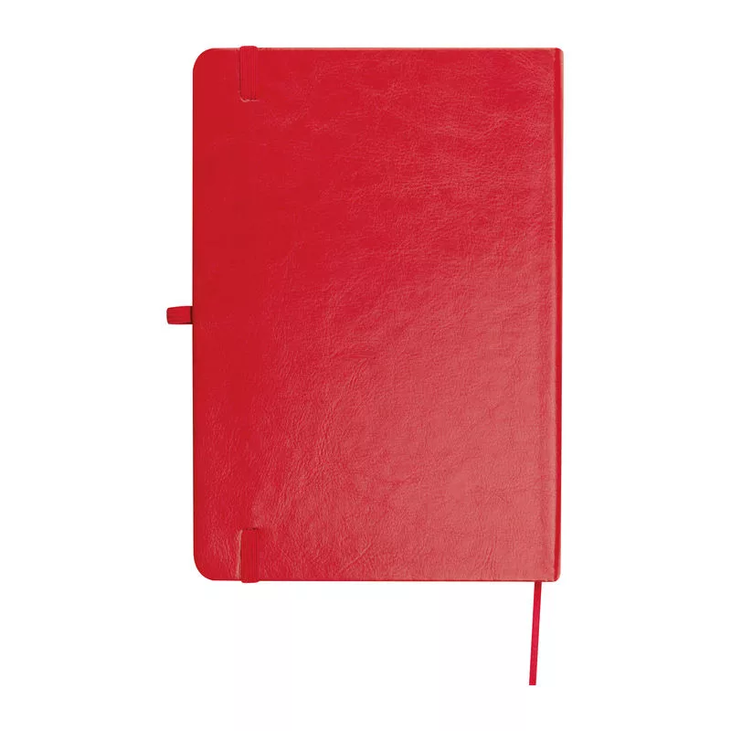 Újrahasznosított A5-ös notesz PU borítással, 192 vonalas oldallal, tolltartó hurokkal és gumipánttal a záráshoz.