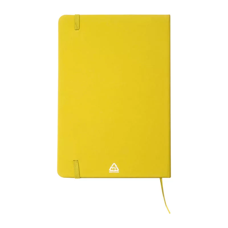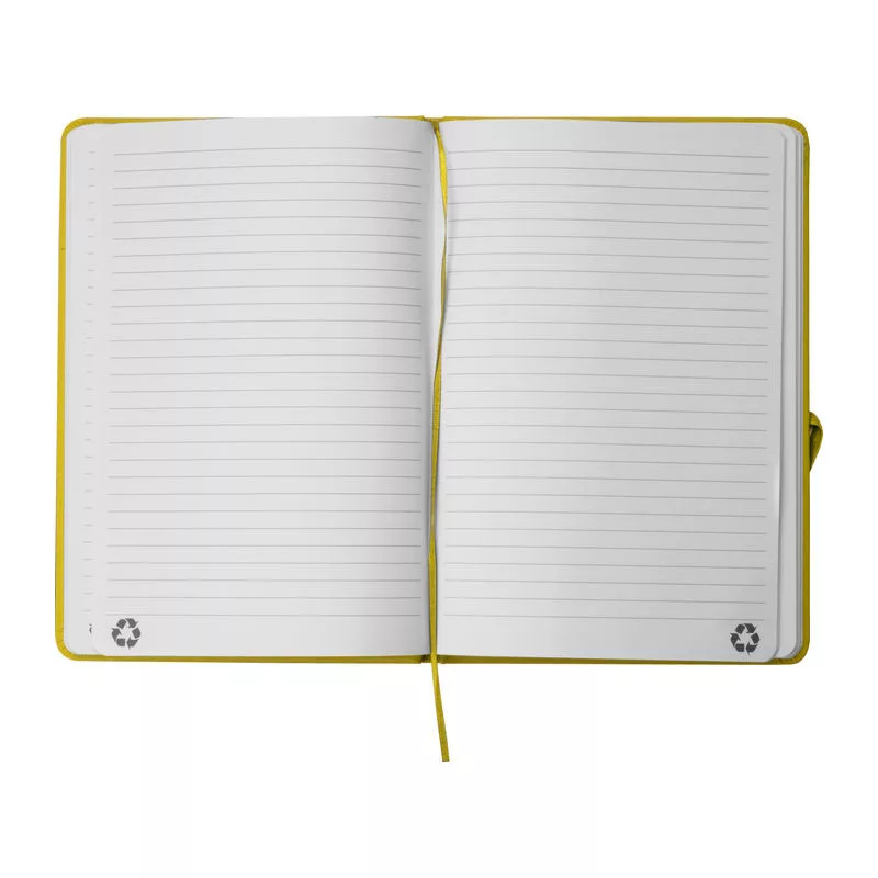 A5 méretű jegyzetfüzet újrahasznosított PU-borítóval és 160 vonalas oldallal, mely újrahasznosított papírból készült.