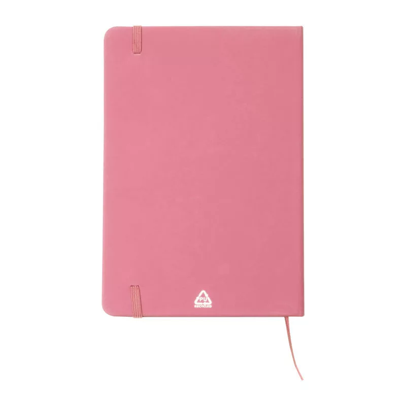 A5 méretű jegyzetfüzet újrahasznosított PU-borítóval és 160 vonalas oldallal, mely újrahasznosított papírból készült.