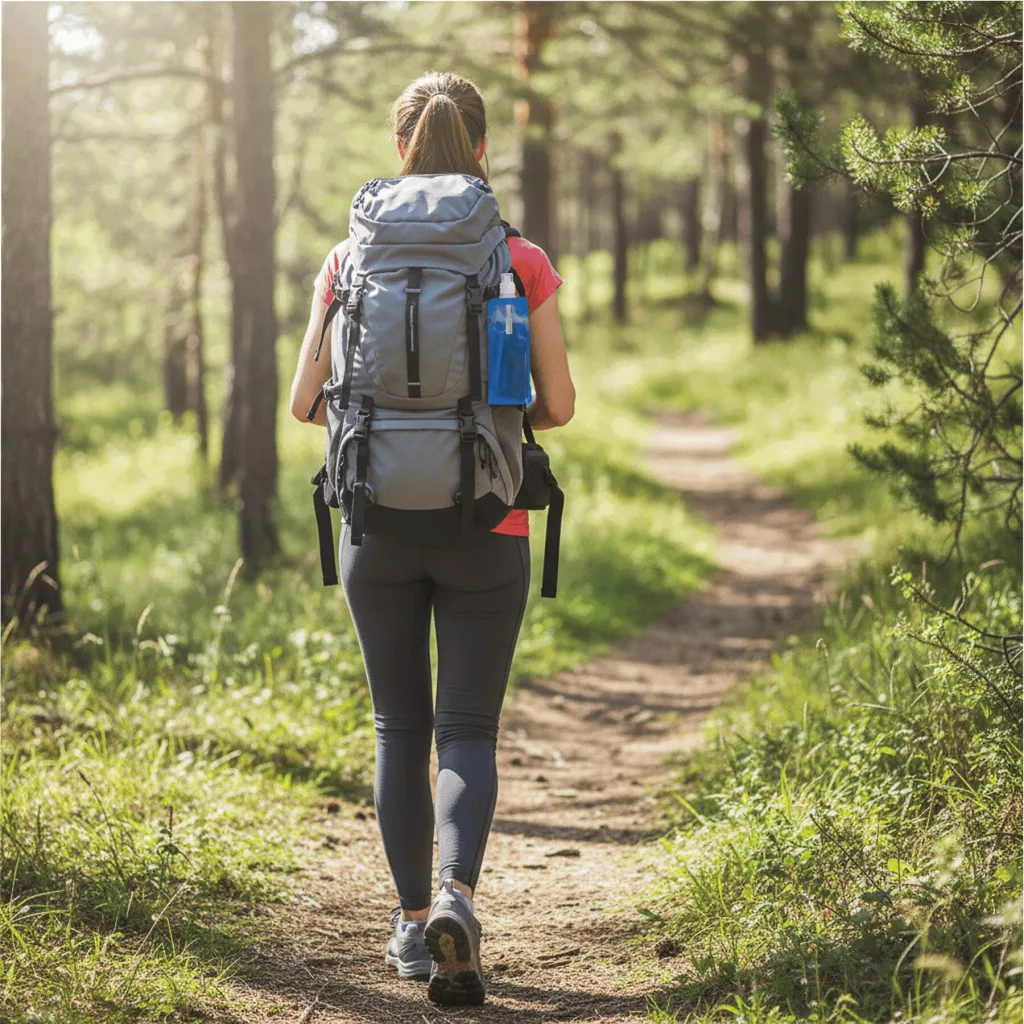 AQUAFOLD összehajtható vizes palack: összecsukható, üresen feltekerhető, átlátszó nyomógombos kupakkal, karabinerrel (a karabiner NEM alkalmas mászásra), űrtartalom kb. 400 ml