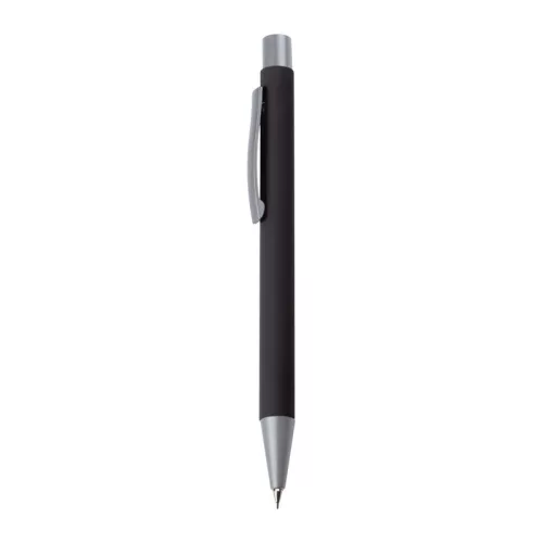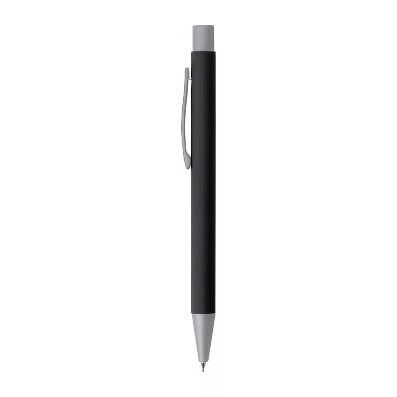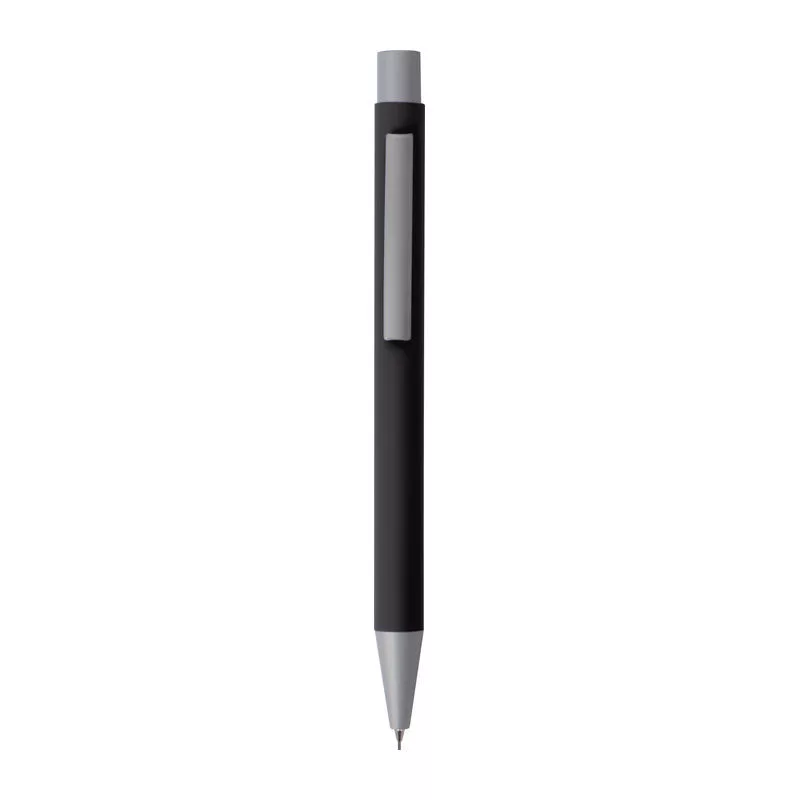 Fémből készült mechanikus ceruza gumírozott borítással és két ceruzabetéttel (0,5 mm).