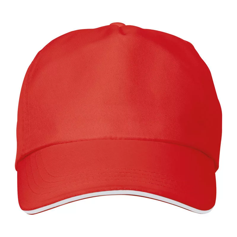 Poliészterből készült 5 paneles baseball sapka, szendvics siltes, tépőzáras záródással.