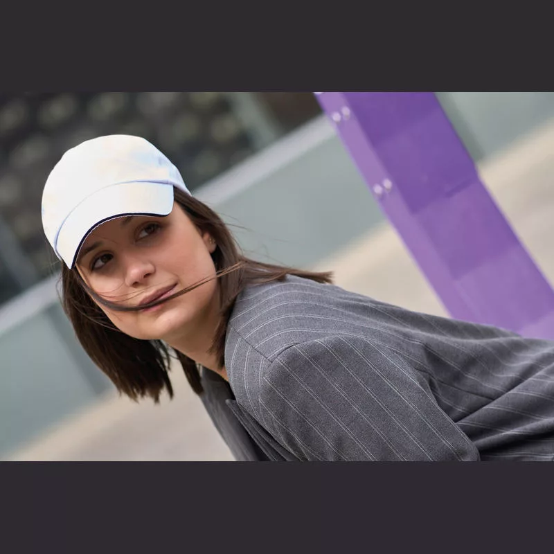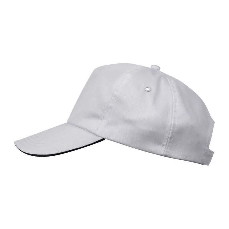 Poliészterből készült 5 paneles baseball sapka, szendvics siltes, tépőzáras záródással.