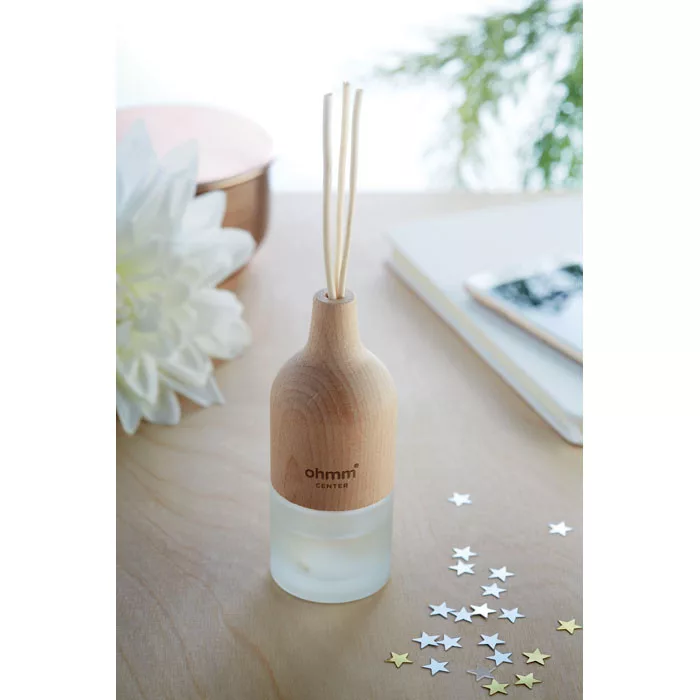 Aroma párologtató 3 rúddal. Üveggel és bükkfa felső résszel, liliom és illattal. Kapacitás 30 ml. A fa természetes anyag, a szín termékenként eltérő lehet. A felső fa rész magába szívja az olajat, amely elősegíti az illat eloszlását.
