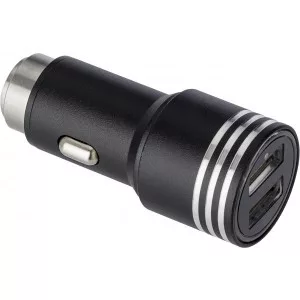 Autós adapter 2 USB kimenettel és vészhelyzeti ablalktörésre alkalmas véggel. Bemenet: DC 12-24V, kimenet: DC 5V/2.4A. Műanyag.