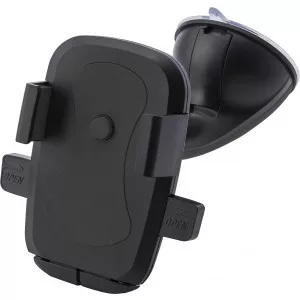 Állítható mobiltelefon-tartó, mely tapadókoronggal rögzíthető az autó szélvédőjére vagy műszerfalára. A telefon rögzítésére a két oldalsó kar szolgál, melyek max. 8,1 cm szélesre állíthatóak. A gomb megnyomásával a két befogó a legszűkebb állapotba áll vissza. Anyaga: ABS műanyag és gumi.