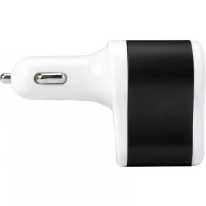 Autós töltő 2 USB csatlakozóval, alumínium szivargyújtóval. Bemenet 12V-24V, kimenet 5V-2100 mA. Műanyag.