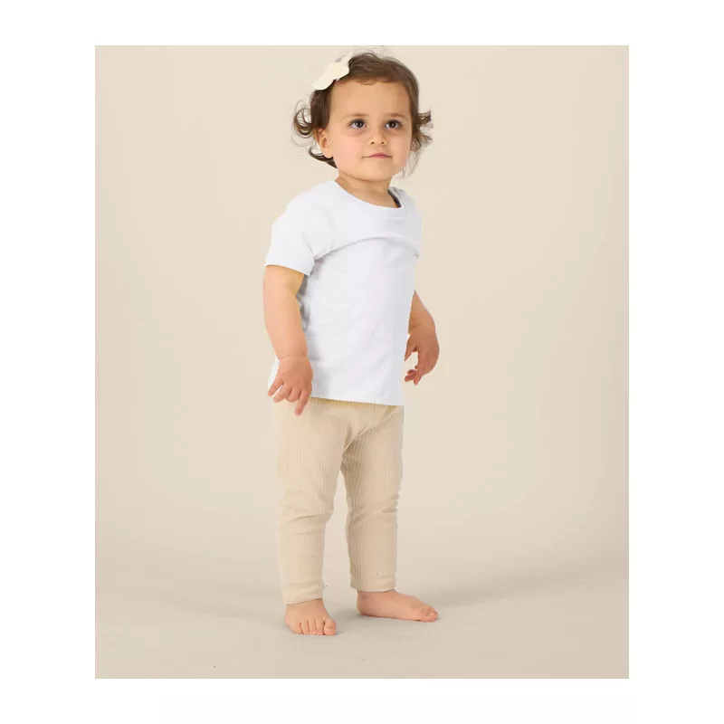 Puha, tiszta pamutból készült póló, amely praktikus vállpántokkal rendelkezik a könnyű öltöztetés érdekében. Természetes, kezeletlen felülettel és tartós, dupla varrással ellátott szegélyekkel. Ideális választás a stílusos kényelemért.