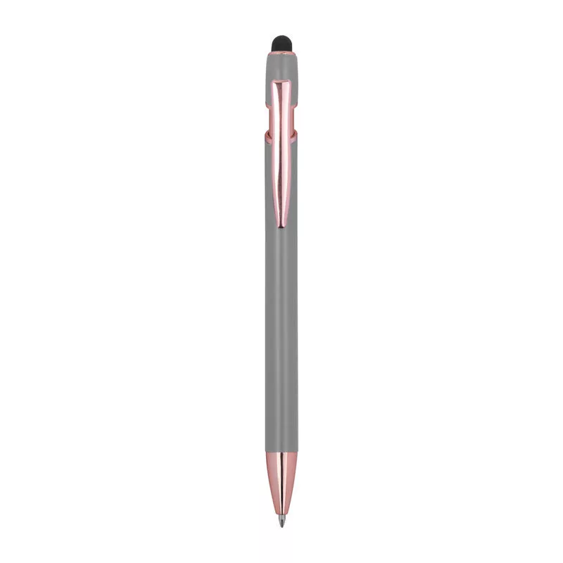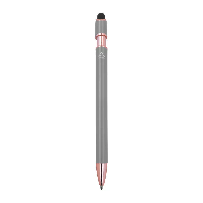 Félig gél tintás (semi-gel) toll újrahasznosított alumíniumból, érintőképernyő-ceruzával és kék tintjú zselével, nagy kapacitású betéttel (1 mm-es hegy).