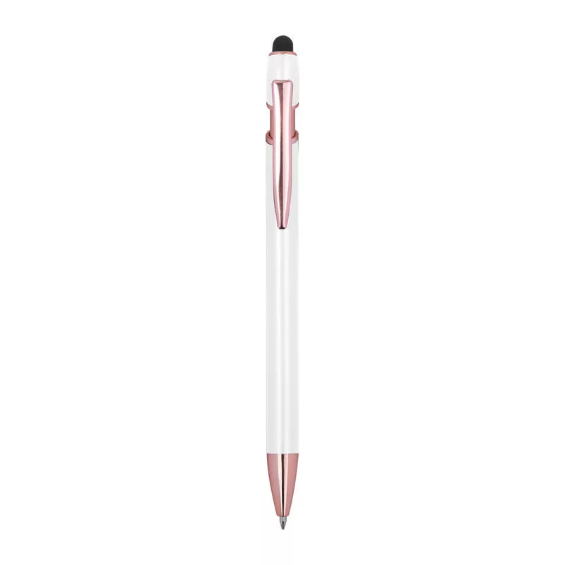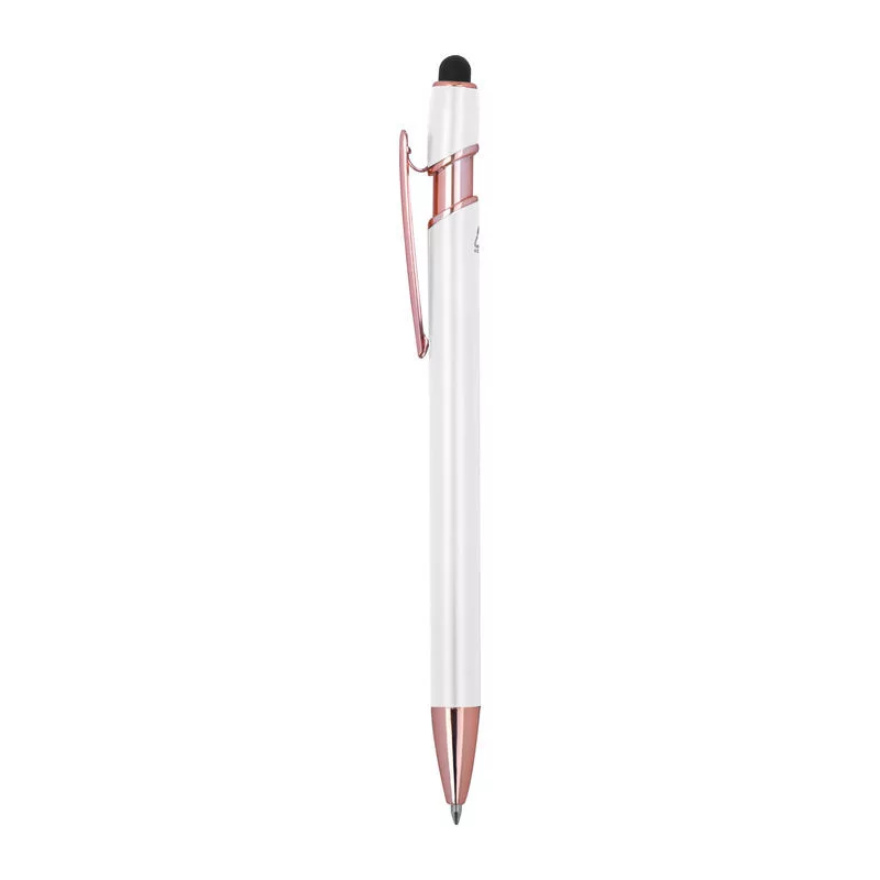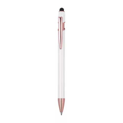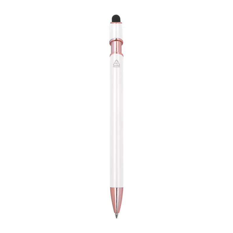 Félig gél tintás (semi-gel) toll újrahasznosított alumíniumból, érintőképernyő-ceruzával és kék tintjú zselével, nagy kapacitású betéttel (1 mm-es hegy).
