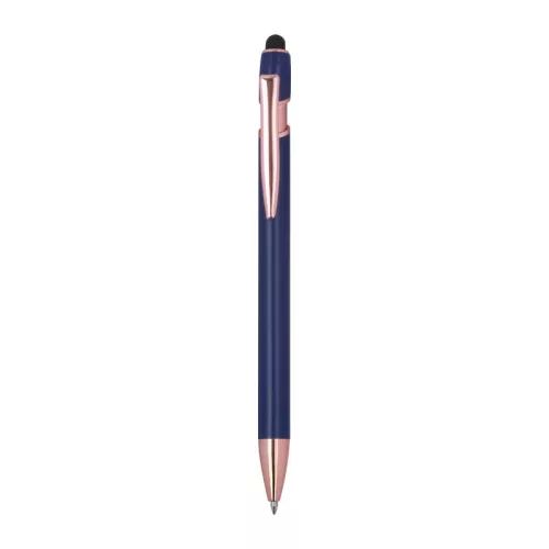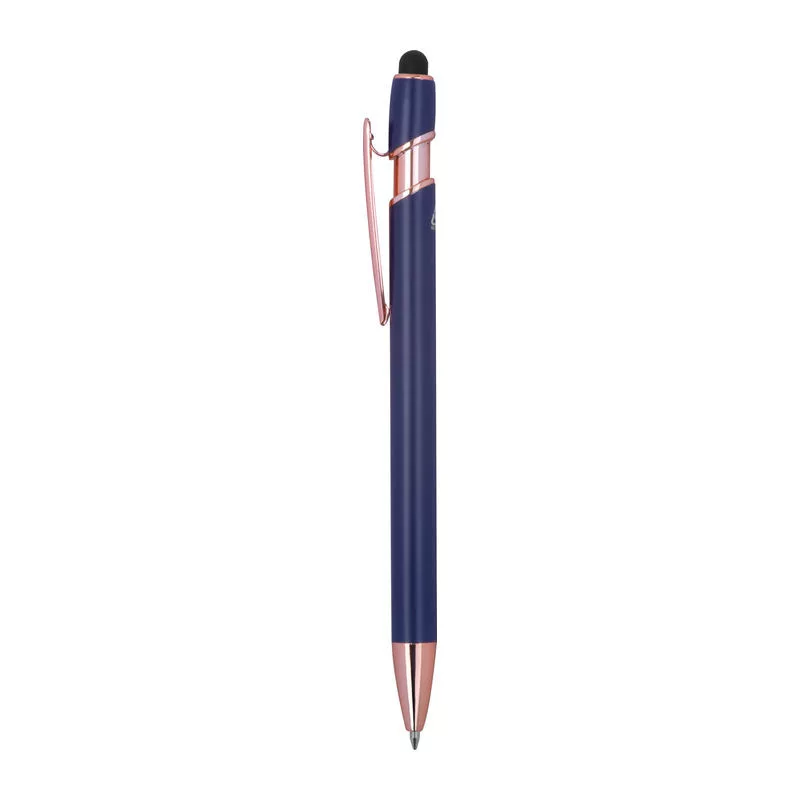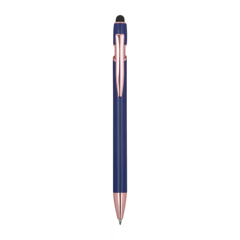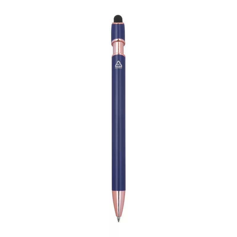 Félig gél tintás (semi-gel) toll újrahasznosított alumíniumból, érintőképernyő-ceruzával és kék tintjú zselével, nagy kapacitású betéttel (1 mm-es hegy).