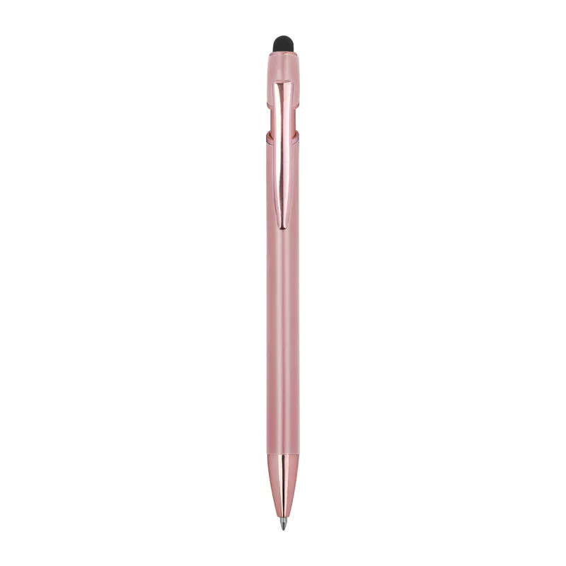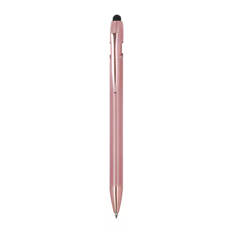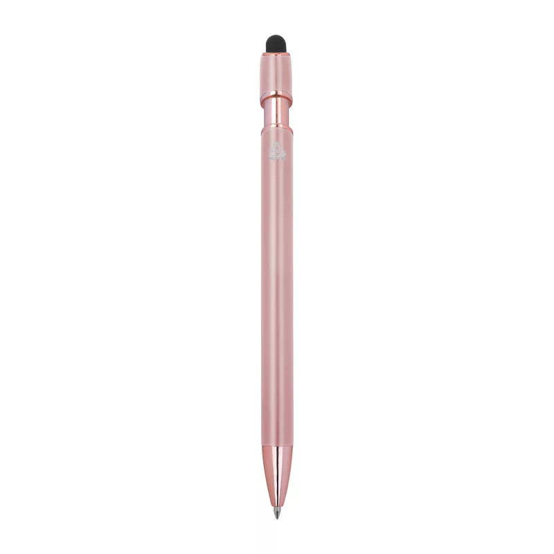 Félig gél tintás (semi-gel) toll újrahasznosított alumíniumból, érintőképernyő-ceruzával és kék tintjú zselével, nagy kapacitású betéttel (1 mm-es hegy).