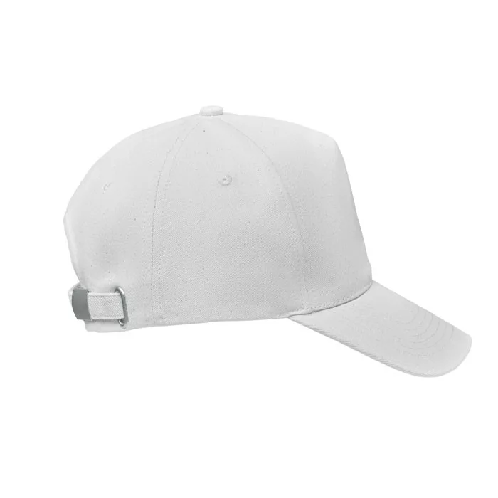 5 paneles baseball sapka 250 g vastag bio szálcsiszolt pamutból, hátul fém csattal záródó állítható pánttal. Ez a stílusos sapka védi arcát a naptól és a mindennapi öltözék remek kiegészítője. Mivel organikus pamutból készült, fenntartható választás.