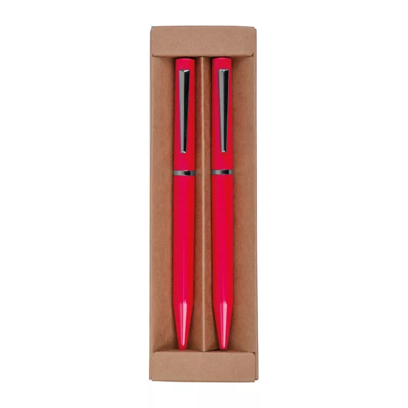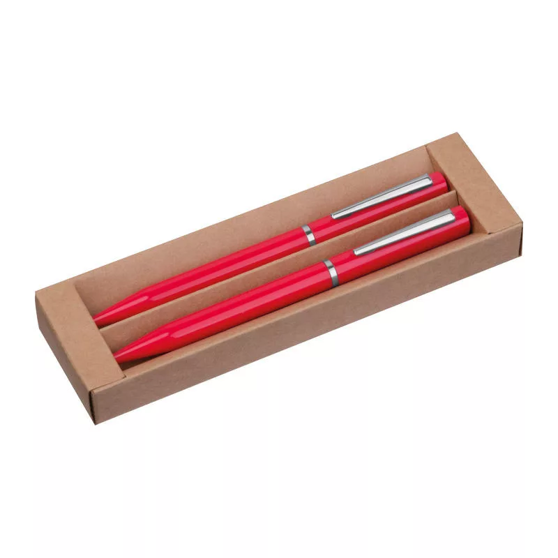 Írószett, amely egy kék tintával író golyóstollból, egy tintamentes ceruzából és egy papírdobozból áll. Mindkét írószer újrahasznosított ABS műanyagból készült.