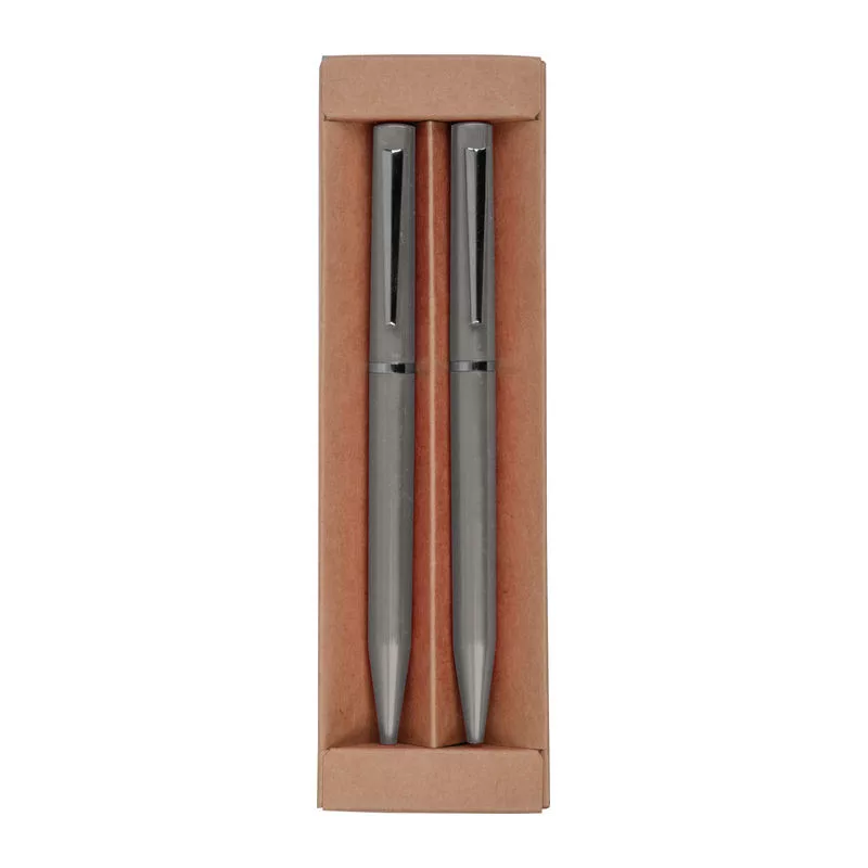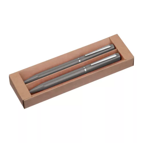 Írószett, amely egy kék tintával író golyóstollból, egy tintamentes ceruzából és egy papírdobozból áll. Mindkét írószer újrahasznosított ABS műanyagból készült.