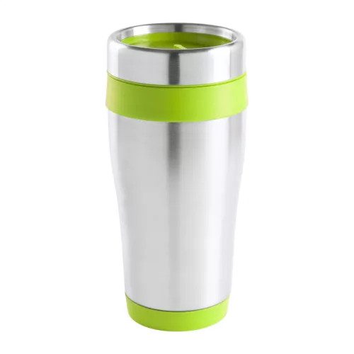 Rozsdamentes acélból készült, duplafalú thermo pohár, színes műanyag részekkel. Díszdobozban szállítjuk, 450 ml.