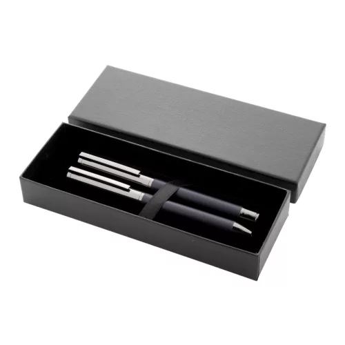 Elegáns fém tollszett, golyóstollal és rollertollal. Fekete ajándékdobozban, kék tollbetéttel szállítjuk.