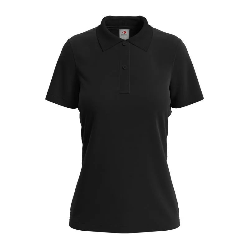 Puha single jersey női pólóing, vonzó piqué hatással, bordázott gallérral és két színben harmonizáló gombbal, mandzsetta nélküli ujjak, nyakszalag, oldalsó varrások, méret- és ápolási címke a gallérban. Anyaga 100% gyűrűsfonású pamut; piqué kinézet (GYH: 85% pamut, 15% viszkóz).