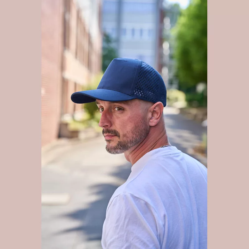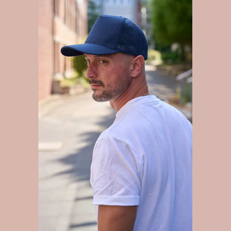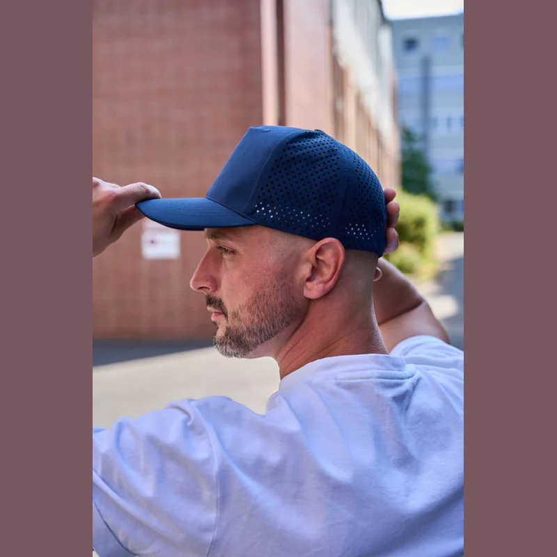 5 paneles sport baseball sapka poliészterből, tépőzárral a fejtetőnél és belső nedvszívó béléssel. A lyukacsos mintázat különösen kényelmes és szellős viseletet biztosít.