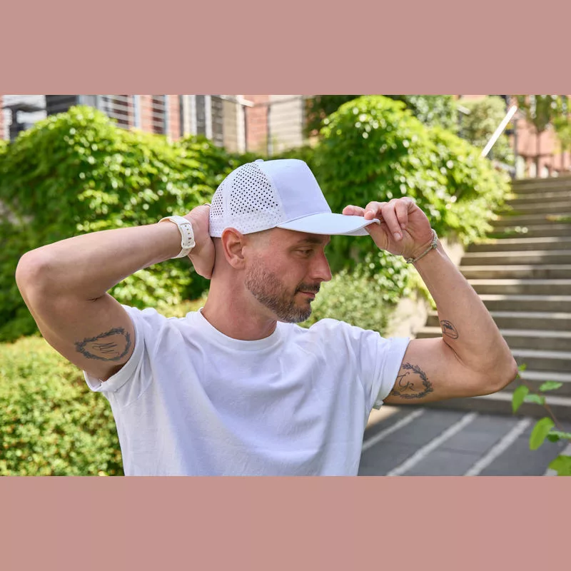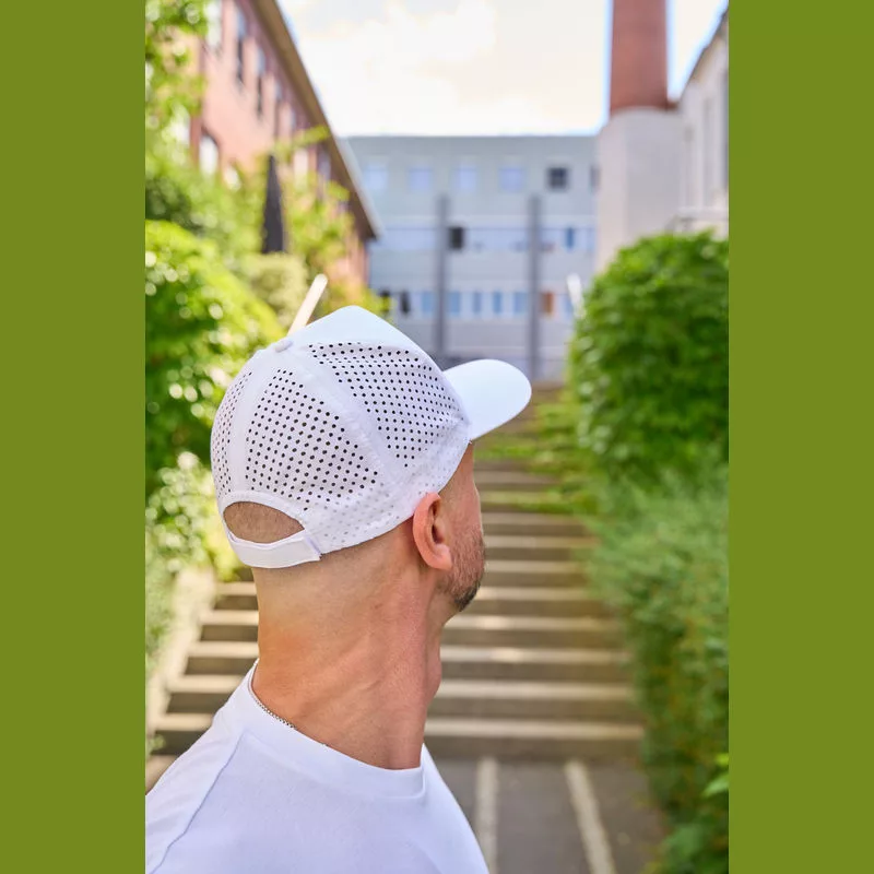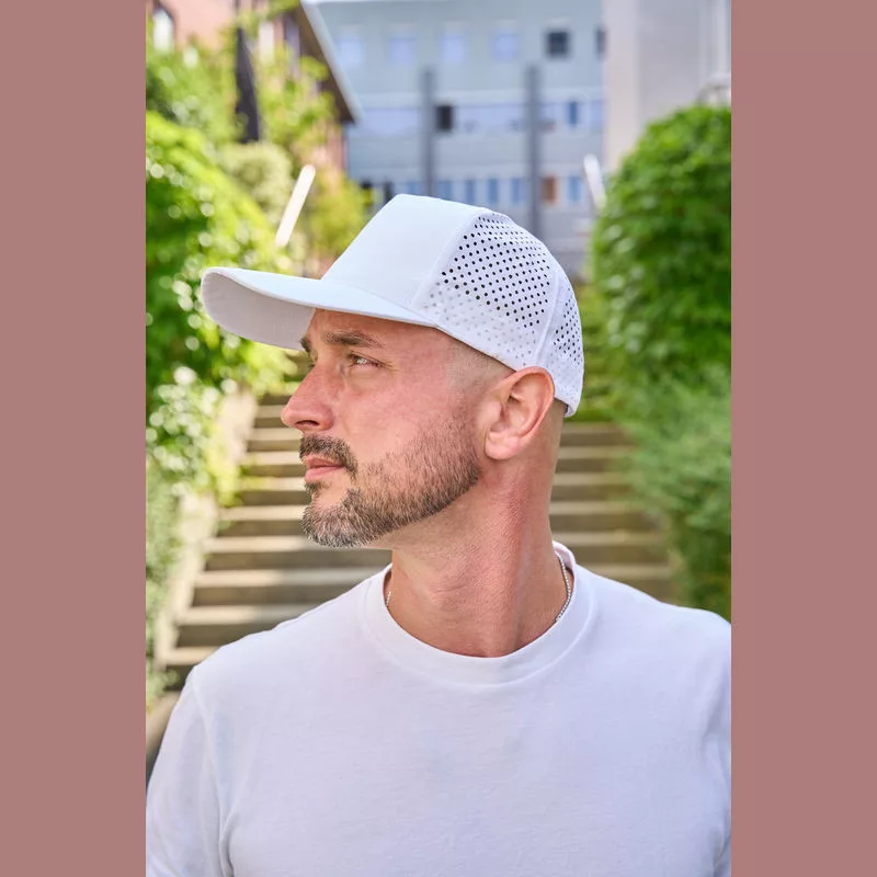 5 paneles sport baseball sapka poliészterből, tépőzárral a fejtetőnél és belső nedvszívó béléssel. A lyukacsos mintázat különösen kényelmes és szellős viseletet biztosít.