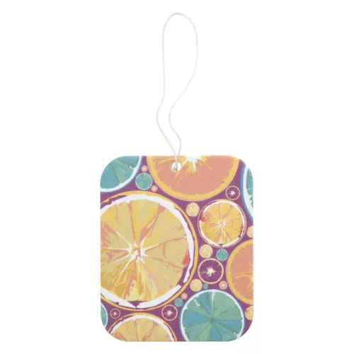 Egyedi gyártású autóillatosító különböző formában és illatban (egzotikus, zöld alma, citrom, új autó, óceán, vanília, luxus, mentol). Full colour nyomtatással a termék mindkét oldalán. Minimális rendelési mennyiség: 250 db.