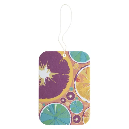 Egyedi gyártású autóillatosító különböző formában és illatban (egzotikus, zöld alma, citrom, új autó, óceán, vanília, luxus, mentol). Full colour nyomtatással a termék mindkét oldalán. Minimális rendelési mennyiség: 250 db.