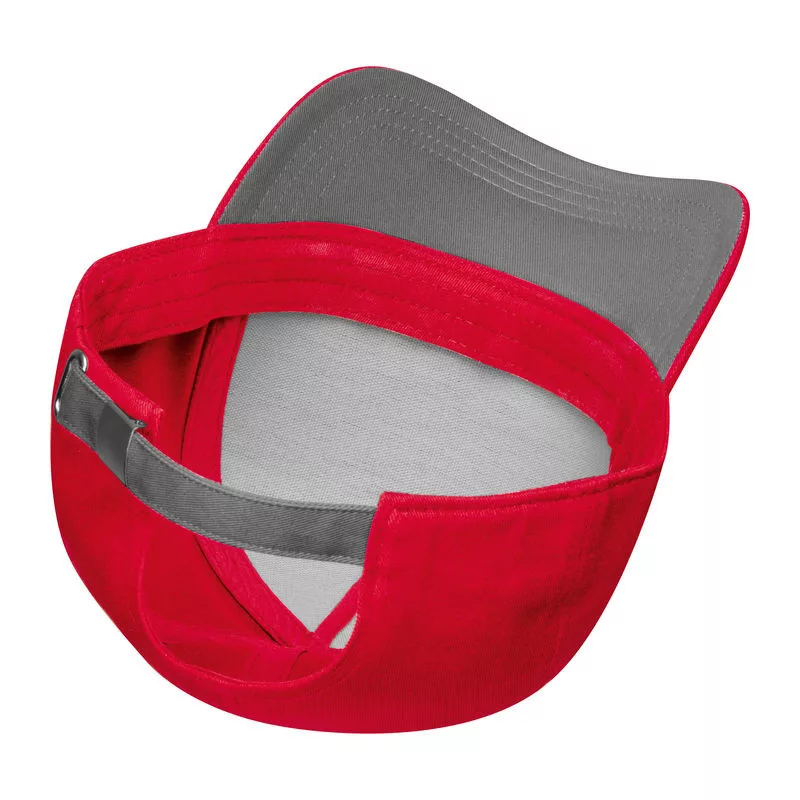 Kiváló minőségű 5 paneles pamut baseball sapka (290 g/m²), ívelt napellenző simléderrel, fém csattal.