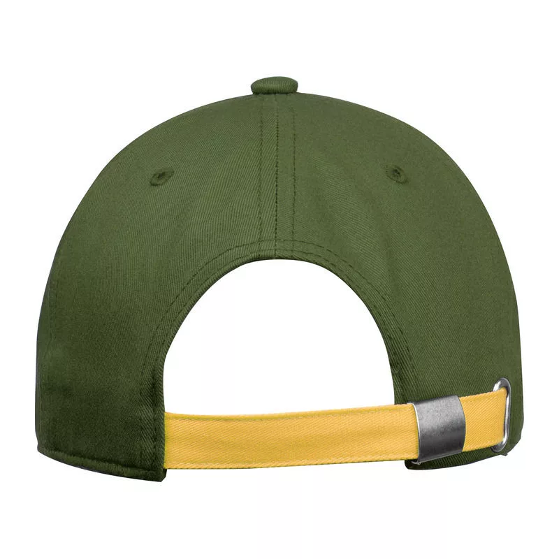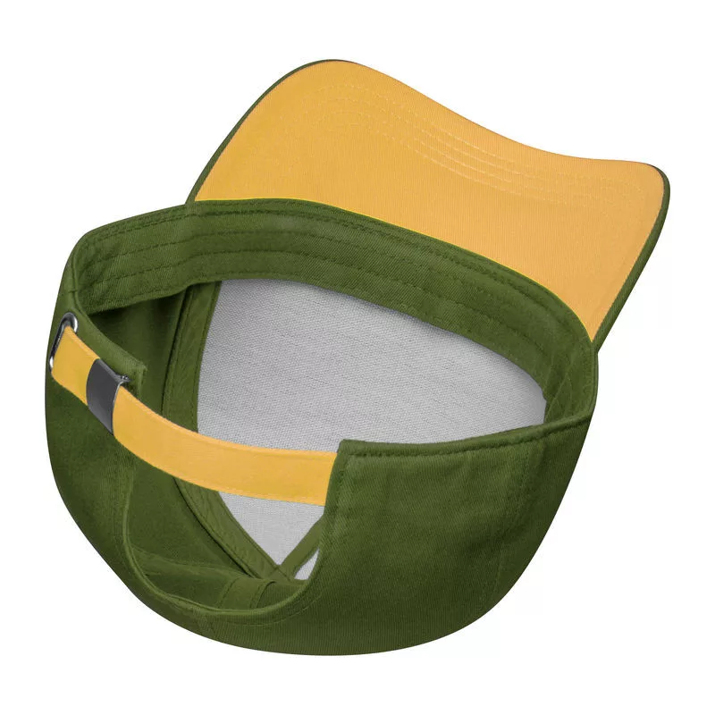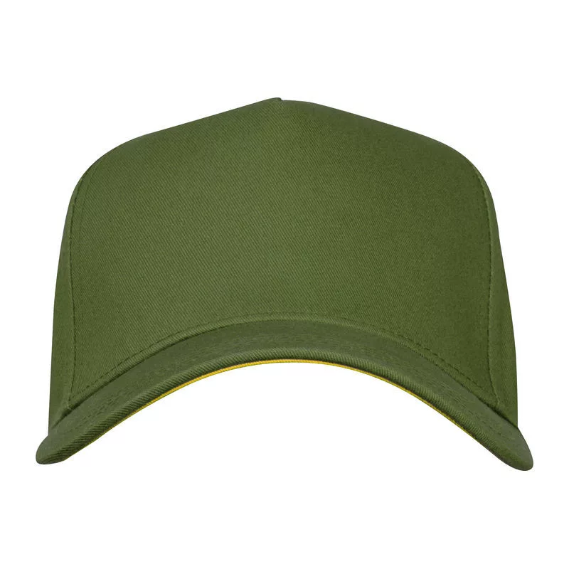 Kiváló minőségű 5 paneles pamut baseball sapka (290 g/m²), ívelt napellenző simléderrel, fém csattal.