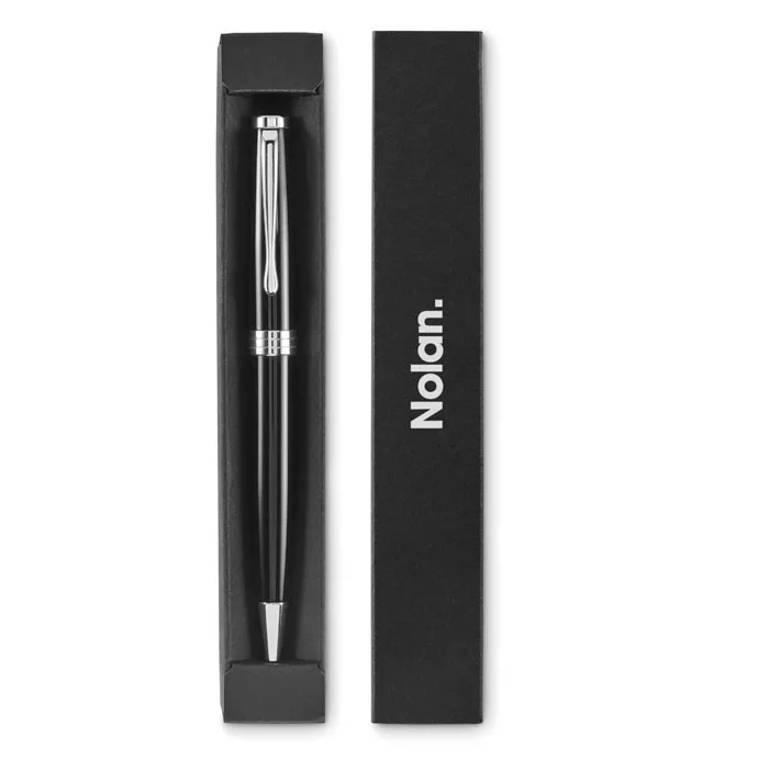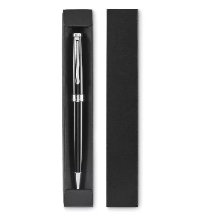 Csavarzáras golyóstoll újrahasznosított rozsdamentes acél tolltesttel. Kéken író betéttel. Ajándékdobozban.