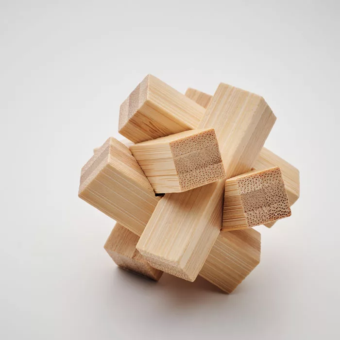 Bambuszból készült, csillag alakú fejtörő kirakó. Újrahasznosított papírdobozban. A bambusz természetes anyag, színében, mintázatában és méretében esetenként eltérő lehet. Szivárgásmentes.
