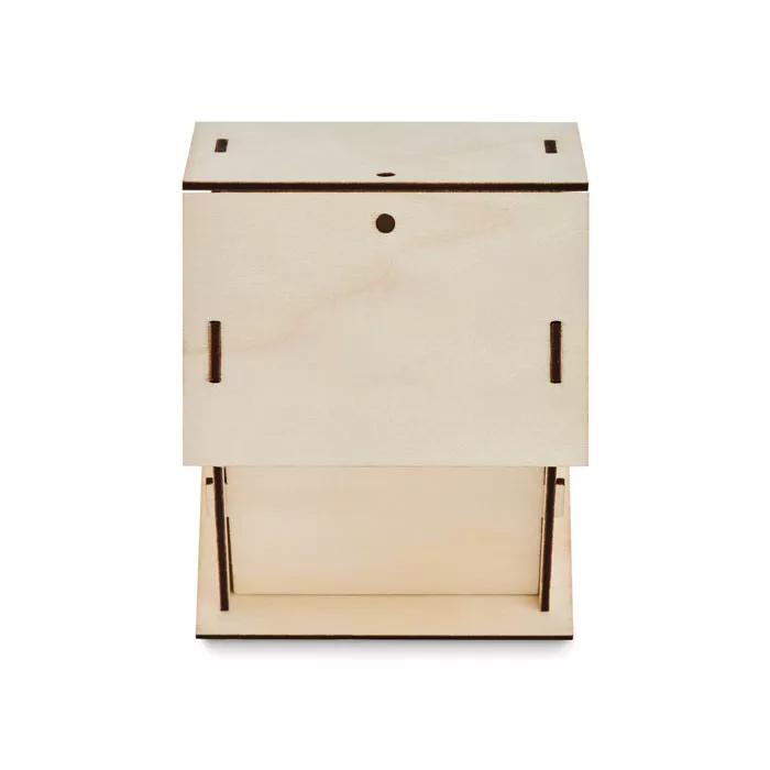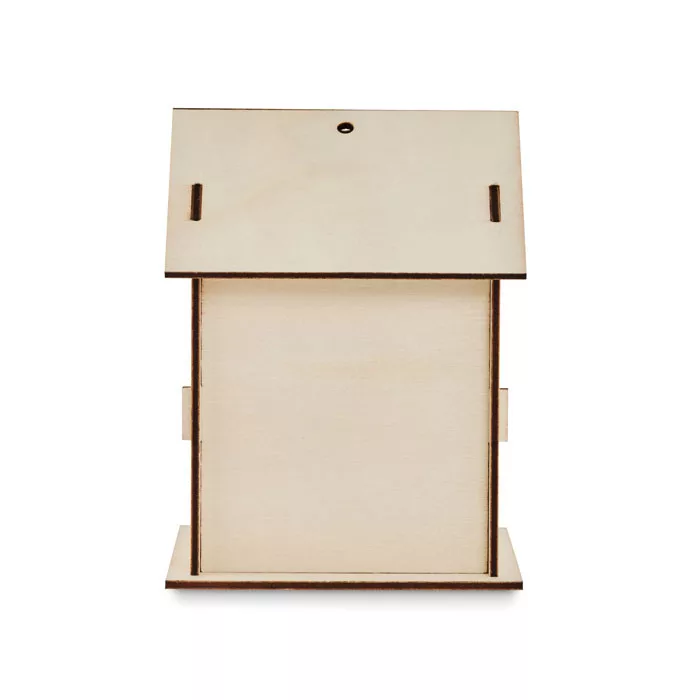 Csináld-magad madárház készítő szett nyárfából. A dekoráláshoz tartalmaz 1 ecsetet és 6 vízfestéket. A házat előre kivágott fa elemekből lehet összeállítani, ragasztó használata nélkül.