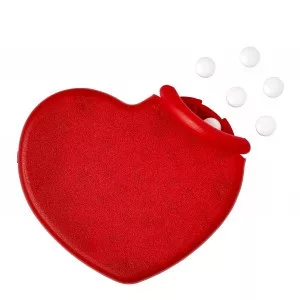 Cukorka szív alakú műanyag dobozban. Kb. 50 db cukormentes mentolos cukorkát tartalmaz.