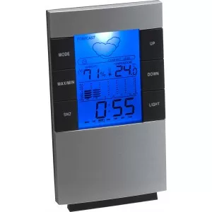Falra is szerelhető ébresztőóra, naptár, hőmérő és páratartalommérő háttérfénnyel. Az elemet tartalmazza.