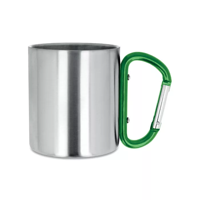 Duplafalú rozsdamentes acél bögre. Nagyméretű karabiner füllel. Űrtartalom: 220 ml.